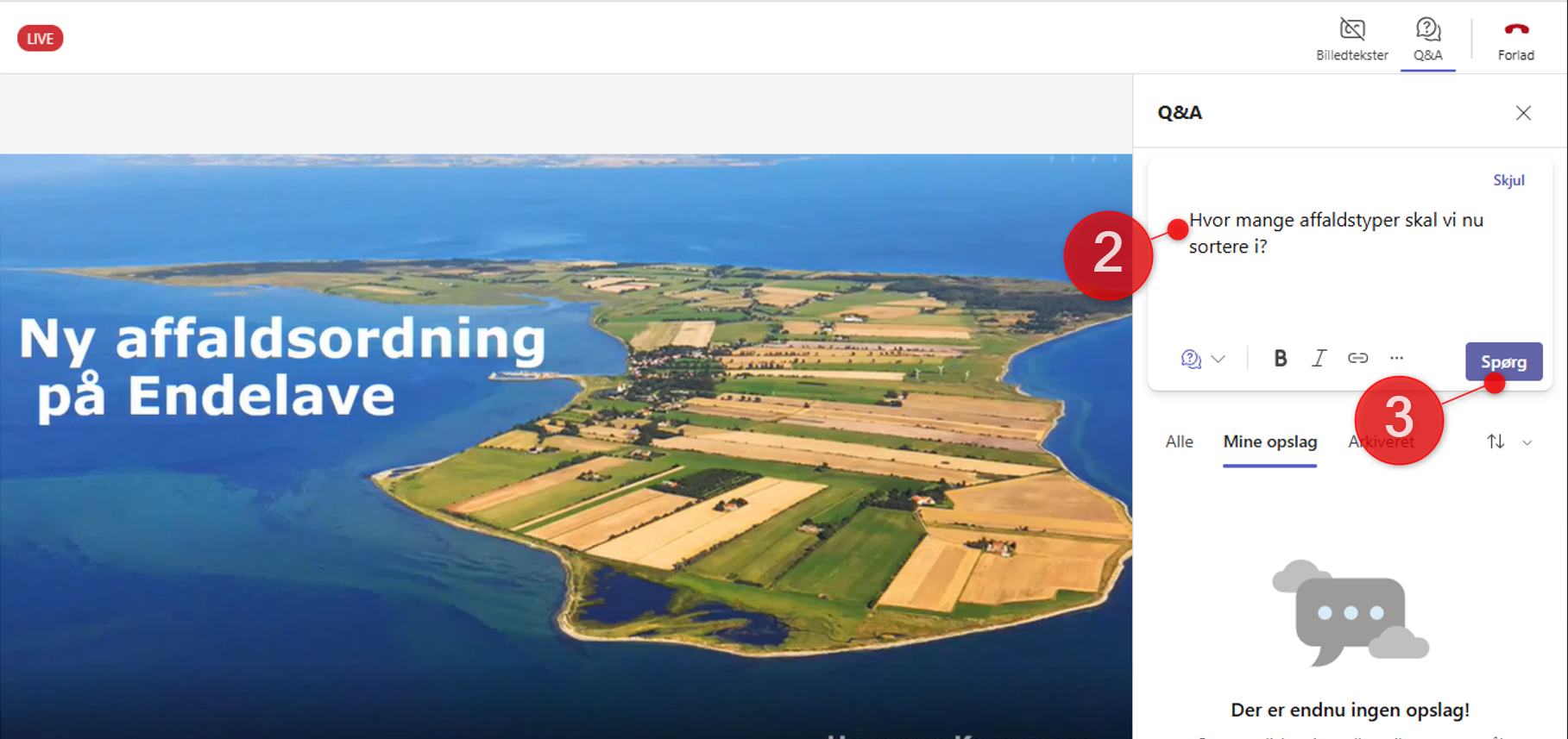 Arrangøren kan svare på spørgsmål direkte til dig eller give dit spørgsmål videre til oplægsholderen og lade denne person svare til alle deltagere.