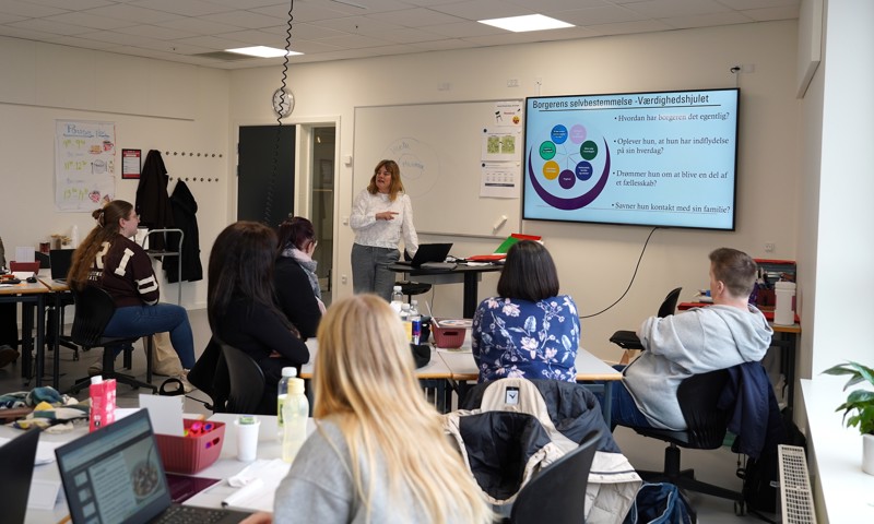 De mange forskellige faggrupper sætter sig på skolebænken for at lære om helhedspleje, borgerens selvbestemmelse og samarbejdet mellem faggrupper på tværs. Alt sammen for at kunne give borgerne en mere sammenhængende og helhedsorienteret støtte og pleje.